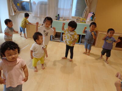 お友達と手を繋いで歩くことが少しずつ上手になってきただいち組。